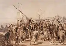 Parvenu vers le à Jacmel, en Haïti, Miranda équipe deux nouveaux navires, le Bee et le Bacchus, ainsi que leurs équipages. Le , Miranda hisse au mât du Leander, le premier drapeau du Venezuela libre qu'il a fait fabriquer. Le , échec d'une première tentative de débarquement à Ocumare de la Costa, quand deux navires garde-côtes espagnols, l’Argos et le Celoso, s'emparent du Bacchus et du Bee, faisant prisonniers soixante hommes, la plupart américains, qui passent en jugement à Puerto Cabello pour piraterie. Sur ce, dix « mercenaires » sont condamnés à mort, pendus et démembrés en place publique le à Puerto Cabello : l'une des victimes est un jeune imprimeur, Miles L. Hall. Les autres prisonniers, officiers et membres d'équipage, sont envoyés aux travaux forcés pour une durée de dix ans. Tous ces hommes comptent parmi les premiers martyrs de la révolution vénézuélienne[13],[21].
