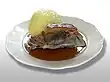 - Sauerbraten (bœuf braisé avec une sauce aigre-douce et servi avec du chou rouge. Le repas est souvent accompagné de gelée d'airelles rouges. À la sauce on ajoute un genre de pain d'épices) ;