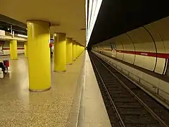Elle dispose d'un quai central encadré par les deux voies de la section commune (U1/U2). Elle est également desservie par les rames des lignes de renforts de l'exploitation U7 et U8[4],[5],[6].