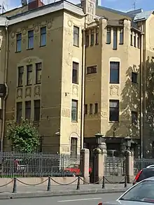 - Appartenant à Ida-Amalia Baltazarovna Lidvall, mère de l'architecte. Il y demeura dans un appartement jusqu'en 1918. Son atelier donnait quant à lui sur la rue Malaïa Possadskaïa