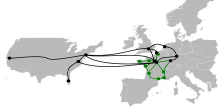 - à New York où il est connecté dans le centre Equinix (mais les liaisons ne sont pas utilisées au 5 mai 2010) depuis Paris (Bezons et Telehouse 2),