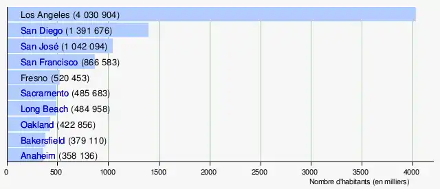 Population des dix villes de Californie les plus peuplées (2016)[6]