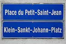 Le logotype créé début 2013 dans une version francophone[80] est abandonné à la suite de nombreuses réactions des élus germanophones[81]. La ville, qui prône le bilinguisme depuis des années, revoit sa copie et reporte la nouvelle identité visuelle de deux ou trois ans[82].