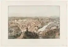 Vue depuis la colline du Belzé, avec les clochers de Notre-Dame et de la cathédrale Saint-Nicolas, et le quartier du Schoenberg au fond à gauche. | ||||