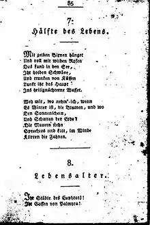 - 1791 : (de) Erste Gedichte (Premiers poèmes), dans le Musenalmanach de Gotthold Friedrich Stäudlin pour l'année 1792.