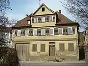 Johann Christian Friedrich Hölderlin est né le en Souabe à Lauffen am Neckar, aujourd'hui ville du Bade-Wurtemberg. Son père, Heinrich Friedrich Hölderlin, administrateur de biens conventuels, meurt à 36 ans, alors qu'il n'a que deux ans. En 1774, sa mère, Johanna Christiana Hölderlin, se remarie à 26 ans avec le conseiller Gock, bourgmestre de Nürtingen, qui décédera en 1779. Cette situation de l'enfant Hölderlin exposé à la mort accidentelle de son « second père » répétant celle de son « vrai père » a suscité après coup au XXe siècle l'intérêt de la psychanalyse[4]. Comme le constate Rudolf Leonhard, Hölderlin est « issu d'une famille où l'on meurt beaucoup »[5] : à la suite des veuvages de sa mère, Hölderlin baignera dans un milieu familial essentiellement maternel et féminin, peuplé d'une succession de vies et de morts : la plupart de ses petites sœurs, ainsi qu'un anonymus, meurent en bas âge. Seuls restent en vie sa deuxième sœur et chère « Rike », Heinrike Hölderlin, née en 1772, et un demi-frère, Karl Gock, né en 1776.