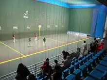 Sur ce fronton se jouent les spécialités d'origine américaine : paleta gomme creuse originaire d'Argentine et le frontenis originaire du Mexique.