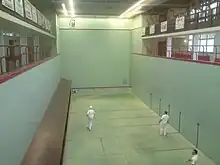 - fronton mur à gauche (appelé simplement frontón en espagnol et pilotaleku, « lieu de la pelote », en basque) ;