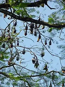 En français, les carpophages sont aussi de gros pigeons frugivores de la sous-famille des Treroninae[2]. Certains singes sont frugivores, mais pas exclusivement. Beaucoup d'oiseaux, par exemple les perroquets, mais aussi certaines grandes chauves-souris, comme les roussettes, sont à 100 % herbivores. Le binturong Arctictis binturong a la particularité de faire partie des mammifères carnivores alors qu'il s'agit d'un omnivore principalement frugivore.