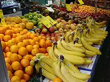 | Agrumes | 100 | 21,5 % (dont 58 % d'oranges principalement utilisés pour faire du jus d'orange)[20]. |