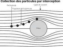 L'erreur la plus répandue consiste à supposer que seul un effet tamis est responsable de la capture des aérosols par un milieu fibreux. En réalité, l'efficacité unitaire de collection d'une fibre est fonction de plusieurs mécanismes physiques[23] :