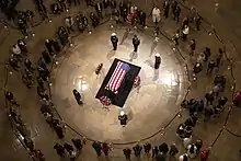 Le public peut dans le même temps se recueillir devant sa dépouille, dans la rotonde du Capitole[5],[6]. Viennent notamment lui rendre hommage lors de ces obsèques Donald et Melania Trump, l'ancien secrétaire d'État Colin Powell, le sénateur du Kansas Bob Dole, le prince Charles de Galles, la chancelière allemande Angela Merkel, le roi de Jordanie Abdallah II et le président polonais Andrzej Duda[7],[8]