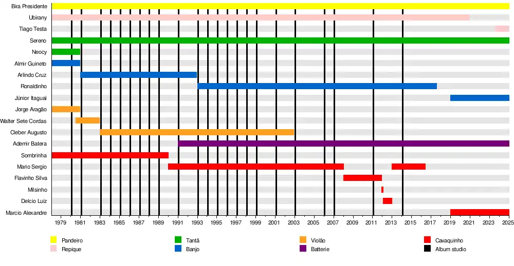 À ce stade également, le Fundo de Quintal a subi plusieurs changements dans sa formation. D'abord avec le départ de Cleber Augusto, en 2003, puis avec Mario Sergio, en 2008, devenu la voix principale du groupe depuis le départ d'Arlindo Cruz en 1992. Sans la voix de Mario Sergio, Flavinho Silva a rejoint le groupe et a été remplacé plus tard par Delcio Luiz. En 2013, Mario Sergio revient dans le groupe. En 2015, l'album Só Felicidade remporte le Latin Grammy Award du meilleur album de samba/pagode[32].