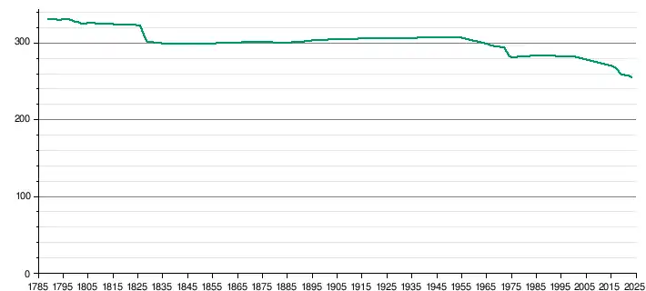 En , le territoire du département de la Vendée comportait 331 paroisses[3]. Alors que le département comptait 282 communes au , 255 communes forment son territoire à compter du .