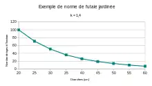 La clé d'une gestion durable d'une futaie jardinée est de conserver une structure stable de classe de diamètre proche de celle d'une courbe de référence ou norme de référence. Cette courbe de référence représente l'état de la forêt à l'équilibre et elle ressemble grossièrement à une exponentielle décroissante, ce qui signifie que le peuplement doit comporter un grand nombre d'arbres de faible diamètre contre un petit nombre d'arbres de grand diamètre. De plus il faut veiller à maintenir un peuplement suffisamment ouvert pour permettre l'acquisition de la régénération, et enfin de suivre en continu l'installation et le développement effectif de la régénération. Une norme de référence a été théorisé par de Liocourt[12] en 1899 (cf. fig. ci-contre).