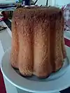 Le gâteau battu, riche en jaunes d'œufs et en beurre, est de forme haute et cylindrique[1]. Il est généralement confectionné avec une douzaine d'œufs[2].
