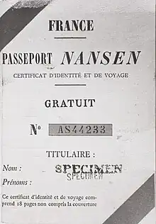 - Passeport Nansen, système étendu aux Arméniens qui fuient le génocide en .