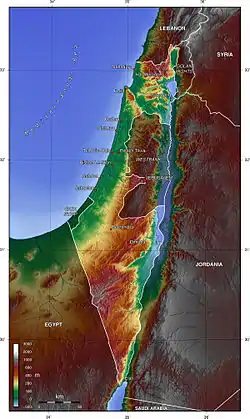 | Frontières | Total: 1 017 km Cisjordanie 307 km, Égypte 266 km, Jordanie 238 km, Liban 79 km, Syrie 76 km, Bande de Gaza 51 km |