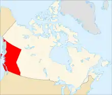- Limite ouest : elle correspond pour sa moitié sud à la côte Pacifique qui est très découpée, elle est longée dans son quart sud par l'île de Vancouver qui lui est parallèle. La moitié nord de la limite ouest correspond à la frontière avec l'Alaska du sud-est.