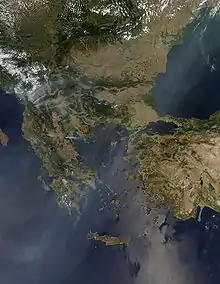 La Macédoine du Nord possède un climat très particulier, expliqué par sa situation géographique et son relief. Le climat des plaines est très différent du climat des sommets et le climat méditerranéen se combine avec l'influence de la mer Noire[6]. La frontière méridionale du pays n'est d'ailleurs qu'à une soixantaine de kilomètres de la mer Égée[7]. Le pays possède également des caractéristiques continentales, qui sont accentuées par les montagnes du sud du pays, qui empêchent l'air chaud méridional de remonter vers le nord. En sens inverse, les monts Šar freinent les vents froids septentrionaux. Globalement, le nord et l'ouest du pays sont plutôt continentaux et le sud et l'est méditerranéens[7].