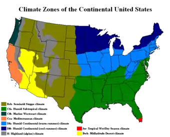 Compte tenu de la diversité naturelle du pays, le régime hydrologique des cours d'eau varie considérablement : de haute montagne (dans les Rocheuses et les autres chaînes de l'ouest), tempéré océanique, tempéré continental à l'intérieur des terres, méditerranéen en Californie, intermittent dans le désert, etc.