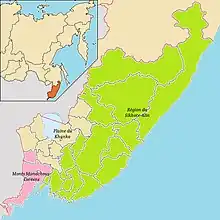 Régions géographiques du Primorié, les raïons ont été colorié en fonction de la région majoritaire.