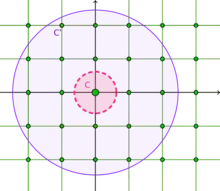 En séparant partie réelle et partie imaginaire, on obtient un morphisme injectif de K dans ℝs × ℝ2t = ℝd. On peut montrer[12] que l’image par ce morphisme d’un sous-groupe additif de K, de type fini (par exemple l’anneau des entiers de K, ou un idéal) est un réseau de ℝd.