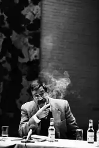 Dans un échange télévisé avec Pierre Bourdieu pour la chaîne Arte en novembre 1999[NB 10], l'auteur déplore les méfaits du néolibéralisme et affirme que « seul l'État peut garantir la justice sociale et économique entre les citoyens. »[37]. Il exprime également son souhait d'ouvrir à nouveau « l'universalisme et le dialogue culturel hérité des Lumières » et d'avoir recours à un humour sardonique comme outil critique du monde moderne[37]. Il considère par ailleurs comme devoir pour tout intellectuel d'« ouvrir sa gueule », regrette « la capitulation du politique devant l'économie » et rapproche besoin de transition écologique et résolution du chômage de masse[37].