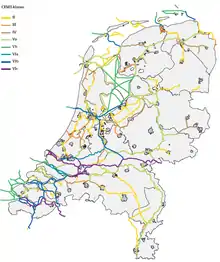 Canaux néerlandais selon leur classe CEMT.