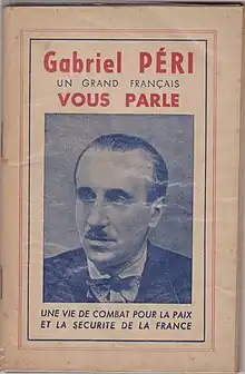 Gabriel Péri, né le à Toulon et mort pour la France[1] le au Mont-Valérien (Suresnes), est un journaliste et homme politique français. Membre du Comité central du Parti communiste français, responsable du service de politique étrangère de L'Humanité et député de Seine-et-Oise, il fut arrêté comme résistant par la police française et fusillé comme otage par les Allemands au fort du Mont-Valérien.