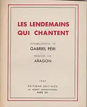 - Les lendemains qui chantent, autobiographie de Gabriel Péri présentée par Louis Aragon, plaquette de 64 pages, publiée aux éditions sociales, Paris en 1947