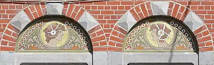 - Vue des sgraffites de Gabriel Van Dievoet, façade de la Maison de la Presse