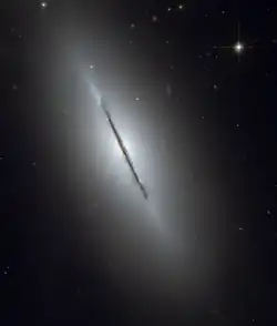 Les galaxies lenticulaires (S0 ou SB0) sont des galaxies à disque sans bras spiraux bien définis. Elles représentent la transition entre une galaxie elliptique et une galaxie spirale dans la séquence de Hubble[1]. Formellement, elles ressemblent à des galaxies spirales dénuées de bras spiraux bien qu'elles possèdent un bulbe galactique d'une taille beaucoup plus importante que celui d'une galaxie spirale standard.