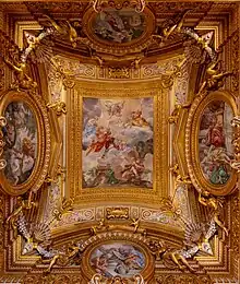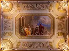 Une des plus belles salles du palais, à l'origine destinée au trône du Grand Duc. Le plafond est de Pierre de Cortone, comme celui des salles de Vénus et de Mars.