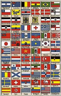 Par exemple en 1910, la galerie des drapeaux des pays du monde comprenait 72 drapeaux représentant 52 États souverains plus la Croix-Rouge. En 2017, 197 États sont officiellement reconnus par l'ONU et il existe plusieurs centaines de drapeaux les représentant.