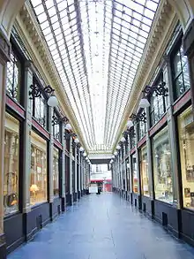 Des appartements occupent le premier étage au-dessus des boutiques et salles de spectacle qui s'étendent sur les deux rives de la chaussée couverte exclusivement piétonne qui parcourt les trois passages.