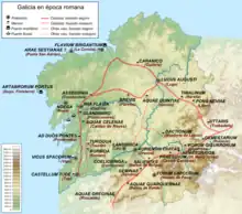 La conquête romaine (de 137 à 22 avant Jésus-Christ), motivée par la richesse en minerais, a créé, au fil des siècles, une culture où les éléments indigènes se sont manifestés avec une force croissante. Les voies romaines, les ponts (Bibei, Ourense), les murailles (Lugo) et les exploitations agricoles autour des villae changent peu à peu l'image du pays.