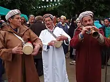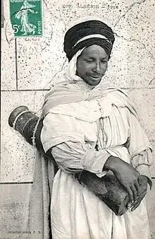Il est également utilisé dans les orchestres féminins des medahates[10] et des fqirât de la région de Tlemcen[11]. Chez les berbérophones du Dahra, il est utilisé dans le genre musical berbère appelé daynan[5]. Il est utilisé avec le bendir et le zamâr à corne dans la variante de la danse allaoui de la région de MSirda[12].