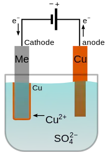 C’est le principe de l’électrolyse utilisé pour appliquer au moyen d'un courant électrique continu, un dépôt métallique, à la surface d'un objet, le métal étant initialement sous forme de cations en solution dans un solvant (en général, l'eau). Cette technique est utilisée pour reproduire, ornementer ou embellir un objet, à partir d'un moule, soit encore pour en prendre l'empreinte.