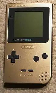 Commercialisé le [18] au Japon et seulement là-bas, il apporte à la Game Boy Pocket ce qui lui manquait le plus : une bonne lisibilité, grâce à un rétro-éclairage de bonne facture avec lequel il devient possible de jouer dans le noir. Le traditionnel interrupteur « on-off » (marche-arrêt) est doté d'une troisième position, la fameuse position « Light », qui permet d'activer ou couper le rétro-éclairage sans redémarrer la console ; l'autonomie des 2 piles LR06 variant de 12 heures lumière allumée, jusqu'à 20 h lumière éteinte. Pour le reste cette console diffère très peu du Game Boy Pocket, sauf une taille légèrement plus élevée. Il y eut des éditions spéciales, beaucoup plus rares que les versions Silver et Gold : Pokémon Center Tokyo, Astro Boy, Toys R'Us… La Game Boy Light a été rapidement éclipsée par la Game Boy Color, qui fut annoncée seulement six semaines avant la sortie de la Game Boy Light. Non pas que ce fût un échec mais Nintendo lui-même voulait contrecarrer les plans d'une concurrence de plus en plus agressive[10].