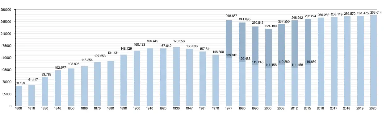 265 086 () 49,87 % 50,13 % 1 680,5 hab./km2 |