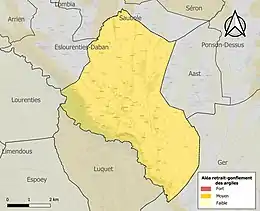 Le retrait-gonflement des sols argileux est susceptible d'engendrer des dommages importants aux bâtiments en cas d’alternance de périodes de sécheresse et de pluie. 99,5 % de la superficie communale est en aléa moyen ou fort (44,5 % au niveau départemental et 48,5 % au niveau national). Sur les 196 bâtiments dénombrés sur la commune en 2019, 196 sont en aléa moyen ou fort, soit 100 %, à comparer aux 75 % au niveau départemental et 54 % au niveau national. Une cartographie de l'exposition du territoire national au retrait gonflement des sols argileux est disponible sur le site du BRGM[24],[Carte 3].