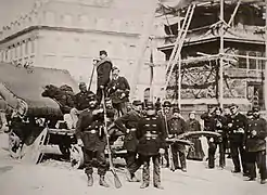 Le 4 septembre 1870, après la défaite de Sedan et la capture de l'empereur du 2 septembre, le gouvernement de la défense nationale est mis en place. Le 6 septembre, tous les électeurs inscrits de la ville de Paris sont convoqués. Les gardes nationaux, au nombre de 590 000, furent mobilisés pour le reste de la guerre et envoyés massivement au front. Ils participèrent à la défense de Paris assiégé.