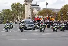 • Escorte du Président de la République française et des chefs d’États étrangers en visite officielle