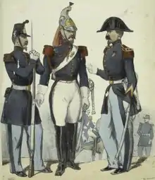 Garde à pied, garde à cheval et sous-officier de la garde républicaine de Paris fin 1848.