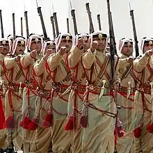 La garde spéciale du roi de Jordanie (coiffe d'astrakan) a pour prérogative sa protection rapprochée, souvent même lors de ses déplacements, tandis que la sécurité du royaume est, elle, confiée à la garde bédouine (keffieh rouge).