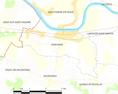 Gardonne est limitrophe de six autres communes dont une dans le département de la Gironde.
