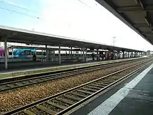 La gare possède cinq voies desservies par trois quais, un latéral situé contre le bâtiment-voyageurs, ainsi que deux quais centraux[10].
