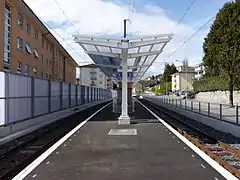 Une nouvelle gare est construite en 2012. Elle est déplacée, d'une centaine de mètres en direction Lausanne. Cela pour dégager le passage à niveau actuel. Cette gare est à double voie pour permettre le croisement des trains. L'horaire cadencé, toutes les 15 minutes, aurait dû être introduit le 9 décembre 2012[5]. Toutefois, si la gare est bien prête le 9 décembre, les éléments de sécurité et de signalisation ne sont pas homologués, ce qui repousse l'introduction du nouvel horaire[6]. Les travaux, eux-mêmes, débutent le 7 mai 2012[7],[8],[9],[10],[11]. Ces derniers sont entrepris de façon à limiter les interruptions du trafic ferroviaire. Toutefois, la pose d'aiguillages nécessite d'interrompre le trafic à plusieurs reprises lors des week-ends du mois de juillet et août 2012[12]. Afin d'améliorer les conditions de vie des riverains de la future gare, les voies sont posées sur un revêtement absorbant d'une épaisseur de 2 cm ainsi que des parois antibruits permettant une isolation phonique et visuelle des fenêtres des immeubles vis-à-vis des voies[12].
