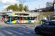 Voies et quais. Le pont-route accueille un pôle d'échanges intermodal. | |